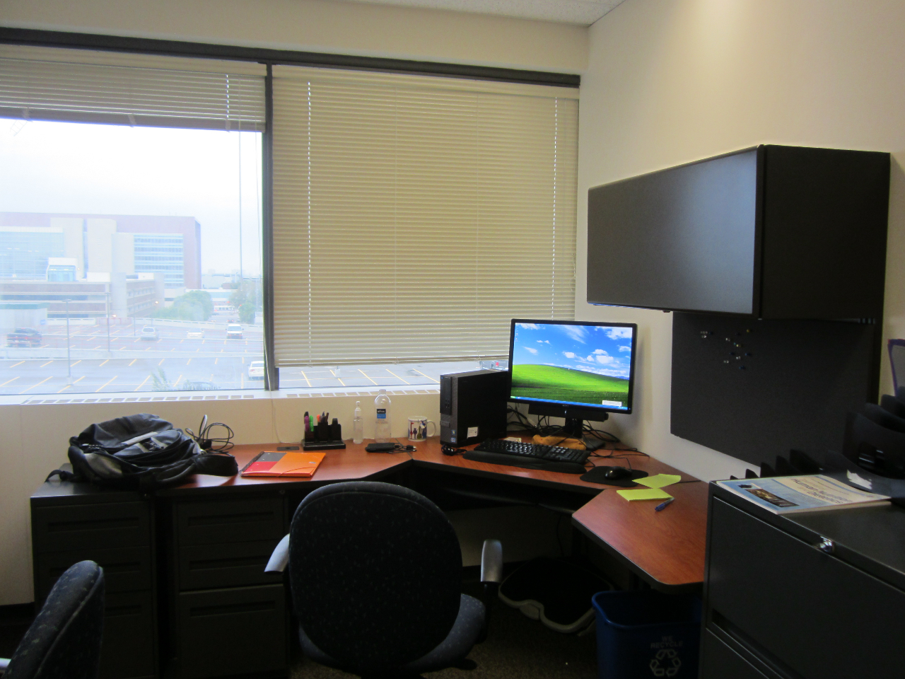 Et voilà mon bureau (notez la taille de l'écran...huge! bon là c'est sur, sur la photo on ne s'en rend pas vraiment compte mais croyez moi sur parole c'est au moins un 147 pouces!!! si, si! à faire palir mon ancien chef....comprendront ceux qui pourront ;-))